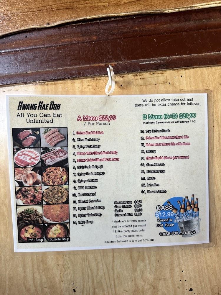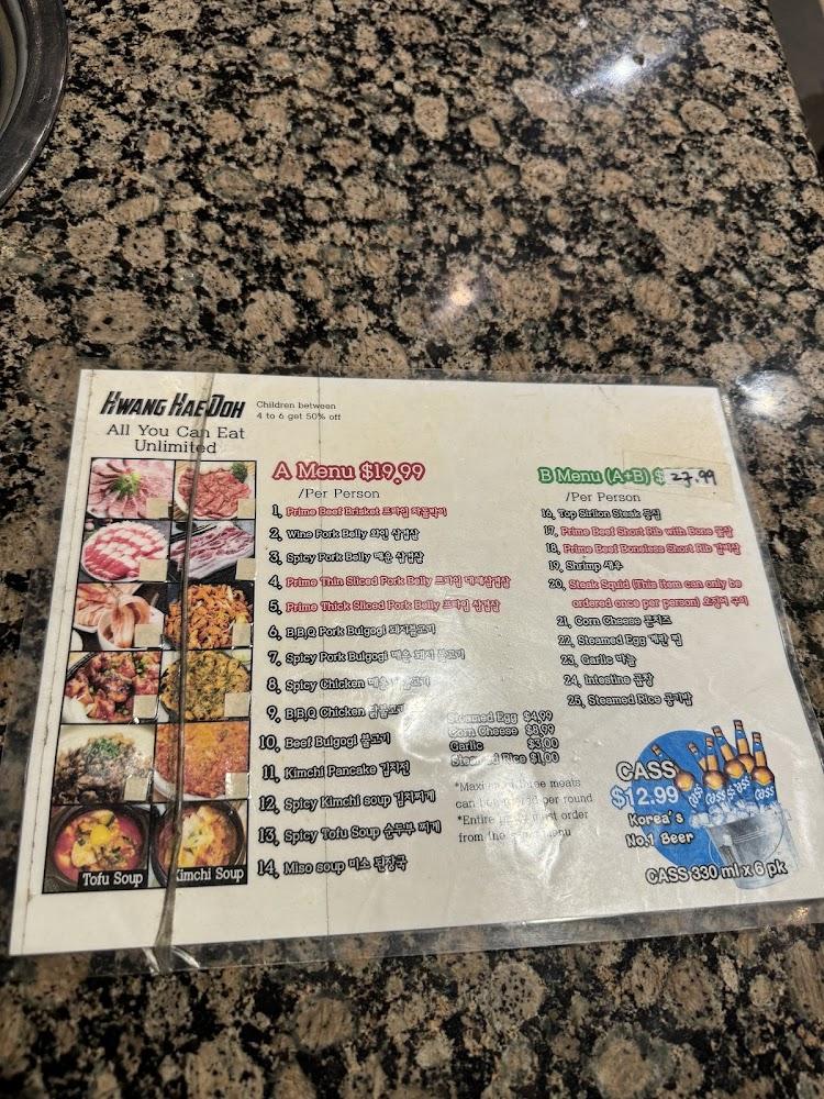 The menu at Hwang Hae Doh showcases a variety of traditional Korean BBQ dishes. Main highlights include sliced brisket, boneless short ribs, and wine-marinated pork belly. Each option caters wonderfully to diverse tastes among diners.